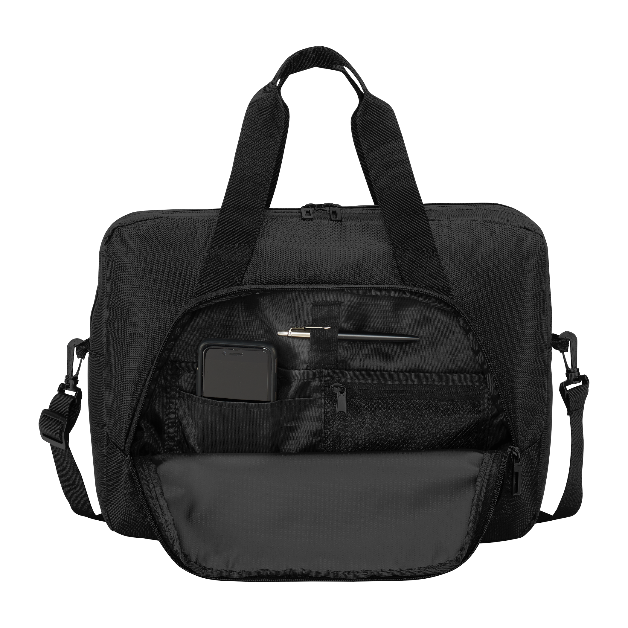 • Front zippered pocket with interior organization panel